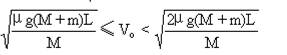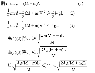 4、简答题 如图所示长为L质量为M的长木板静止在光滑水平面上,A,B为其端点,O为中心,质量为m长度可忽略的小木块以水平地沿木块表面滑来,两物体间动摩擦因数为μ,问