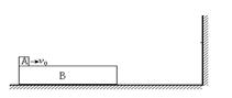 1、计算题 如图示,质量M=2kg的长木板B静止于光滑水平面上,B的右边放有竖直固定挡板。现有一小物体A(可视为质点)质量为m=1kg,以初速度从B的左端水平滑上B。已知A与B间的动摩擦因数