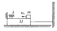 2、简答题 .如图所示,质量为M的长滑块静止在光滑水平面上,左侧固定一劲度系数k足够大的水平轻质弹簧,右侧用一不可伸长的细轻绳连接于竖直墙上,细绳所能承受的最大拉力为T。使一质量为m、初速度为v0的小物块,在滑块上无摩擦地向左滑动,而后压缩弹簧。(弹簧弹性势能的表达式,其中k为劲度系数,x为弹簧的压缩量)