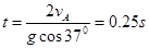 (2)将小球由A点飞出至落到AB面的运动分解为沿斜面(x轴)和垂直于斜面(y轴)两个方向;则落回斜面的时间等于垂直于斜面方向的时间