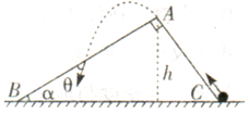4、计算题 如图所示,一个截面为直角三角形的劈形物块固定在水平地面上.斜面,高h=4m,a=37°,一小球以Vo=9m/s的初速度由C点冲上斜面.由A点飞出落在AB面上.不计一切阻力.(Sin37°=0.6,cos37° =0.8,g="10" m/s2)求.