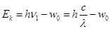 本题解析:光电效应就是光子能量克服引力把电子击出的过程,一部分能量被消耗掉最小值即逸出功,一部分转化为电子初动能最大即最大初动能。波长λ的入射光频率