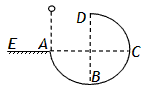 4、选择题 固定在竖直平面内的光滑圆弧轨道ABCD,其A点与圆心等高,D点为轨道的最高点,DB为竖直线,AC为水平线,AE为水平面,如图所示。今使小球自A点正上方某处由静止释放,且从A点进入圆轨道运动,只要适当调节释放点的高度,总能使球通过最高点D,则小球通过D点后