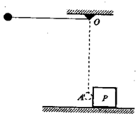 如图所示,质量为m的球系于长L=0.8m的轻绳末端,绳的另一端系于O点。将小球移到轻绳水平的位置后释放,小球摆到最低点A时,恰与原静止于水平面上的物体P相碰。碰后小球回摆,上升的最高点为B(图中未画出),A、B的高度差为h=0.20m。已知物体P的质量为M=3m,物体P与水平面间动摩擦因数,小球与P的相互作用时间极短,不计空气阻力,