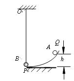 (2)如图所示,A、B为两个大小可视为质点的小球,A的质量为M=0.6Kg,B的质量=0.4Kg,B球用长L=1.0m的轻质细绳吊起,当B球处于静止状态时,B球恰好与光滑弧形轨道PQ的末端点P(P端切线水平)接触但无作用力。现使A球从距轨道P端h=0.20m的Q点由静止释放,当A球运动到轨道P端时与B球碰撞,碰后两球粘在一起运动,若g取10m/s2,求:两球粘在一起后,悬绳的最大拉力。