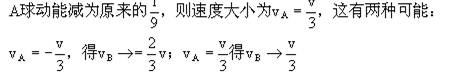 2、选择题  质量为2m的B球,静止放在光滑水平面上,另一质量为m的A球以速度v与B球正碰,碰后A球动能减为碰前的1/9,则B球的速度可能为