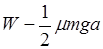 1、选择题 如图所示,水平桌面上的轻质弹簧一端固定,另一端与小物块相连。.弹簧处于自然长度时物块位于O点(图中未标出)。物块的质量为m,AB =a,物块与桌面间的动摩擦因数为μ。现用水平向右的力将物块从O点拉至A点,拉力做的功为W。撤去拉力后物块由静止向左运动,经O点到达B点时速度为零。重力加速度为g。则上述过程中