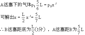 A活塞距B为5L/7 ,B活塞距底为L/2