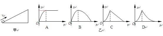 4、选择题 如图甲所示,物体以初速度v0冲上足够长的粗糙斜面,乙图中关于物体位移x与时间t关系的图象可能正确的是?