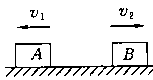 3、计算题  如图所示,A、B均置于水平面上,其与水平面间的动摩擦因数之比为1︰2,分别向左、右运动。若A、B组成的系统动量守恒,则为多少?若它们同时停下,其初速度之比为多少?