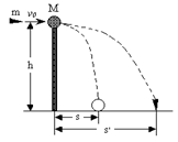 3、实验题 一个质量为M=0.20kg的小球放在高度为h=5.0m的直杆顶端。一颗质量m=0.010kg的子弹以v0 = 5.0×102m/s的速度沿水平方向击中小球,并穿过球心,小球落地处离杆的距离为s=20m。求子弹落地处离杆的距离。(g = 10m/s2)