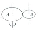 4、填空题 如图所示,A、B为咬合转动的两个齿轮,它们的半径分别为RA和RB,且RA=2RB,则A、B两轮边缘上两点的角速度之比为_____________;线速度之比为______________。