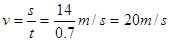 2、选择题 从波源质点O起振开始计时,经时间t=0.7s,x轴上距波源14m处的质点开始振动,此时波形如图所示,则(?)?