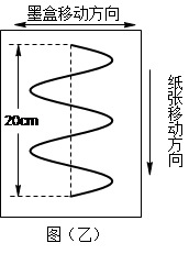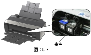 5、填空题  喷墨打印机在打印纸张时,纸张以设定的速度匀速移动,打印喷头则随着墨盒一起沿着垂直方向根据打印文件上的信息左右移动,如图(甲)所示。某次打印时,进行如下设置:纸张规格为A4纸(宽度21cm,长度29.7cm),纵向打印,打印速度为每分钟15张,启动打印机,打出一张如图(乙)所示的图像。根据所给信息可以得出纸张移动速度v=____________m/s,打印墨盒左右移动的频率f=_____________Hz。 (不计切换纸张的间隔时间)