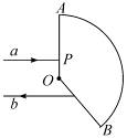 5、选择题 如图4-1-14所示为一块横截面积为扇形的半径为r的柱体玻璃砖,O为截面的圆心,AB为柱体玻璃砖的圆弧面,将其置于空气中.现有一细光束a垂直射到AO面上的P处,经玻璃砖弧面反射,之后经OB面折射平行返回.已知∠AOB=135°,玻璃对此光的折射率为2,则入射点P与圆心O的距离为(?)