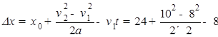 1、计算题 某人骑自行车以8m/s的速度匀速前进,某时刻在他前面24m处以10m/s的速度同向行驶的汽车开始关闭发动机,以2m/s2的加速度减速前进,求: