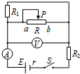4、计算题 如图所示,电阻R1=R2=R3=1.0W,当电键K闭合时理想电压表读数是1.0V,当K断开时理想电压表读数是0.8V,求:电源的电动势E和内电阻r。
