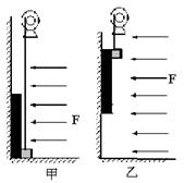 5、计算题 .如图甲所示,一长绝缘木板靠在光滑竖直墙面上,质量为m=1kg.木板右下方有一质量为2m的小滑块(可视为质点),滑块与木板间的动摩擦因数为μ=0.4,木板与滑块处有恒定的风力F=4mg,风力方向水平向左,若电动机通过一根绝缘绳拉动滑块(绳保持竖直),使之从地面由静止开始匀加速向上移动,当滑块与木板分离时(如图乙所示),滑块的速度大小为v=8m/s,此过程中电动机对滑块做的功为W0=136J(重力加速度为g=10m/s2).
