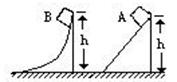 5、选择题  两个质量相等的小铁块A和B,分别从两个高度相同的光滑斜面和光滑圆弧斜坡的顶点由静止滑向底部,如图所示,下列说法中正确的是(   )