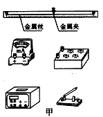 (1)他们截取了一段金属丝,拉直后固定在绝缘的米尺上,并在金属丝上夹上一个小金属夹,金属夹可在金属丝上移动请根据现有器材,设计实验电路,并连接电路实物图甲。
