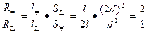 5、选择题 把两根同种材料的电阻丝分别连在两个电路中,甲电阻丝的长度为l,直径为d,乙电阻丝的长度为2l,直径为2d,为使两电阻丝消耗的电功率相等,加在两电阻丝上的电压比应满足()