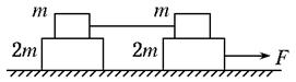 1、选择题 如图所示,光滑水平面上放置质量分别为m和2m的四个木块,其中两个质量为m的木块间用一不可伸长的轻绳相连,木块间的最大静摩擦力是μmg.现用水平拉力F拉其中一个质量为2m的木块,使四个木块以同一加速度运动,则轻绳对m的最大拉力为(?)