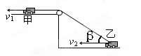 5、选择题 如图所示,汽车甲通过定滑轮拉汽车乙前进,甲、乙分别在上下两水平面上运动,某时刻甲的速度v1,乙的速度为v2,则v1∶v2为(?)