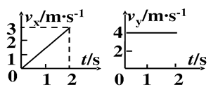 1、选择题 质量为1kg的物体在光滑水平面内做曲线运动,已知该物体在互相垂直方向上的两个分运动的vx-t和vy-t图像分别如图所示。则下列说法正确的是