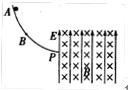 3、选择题 如图所示,光滑绝缘轨道ABP竖直放置,其轨道末端切线水平,在其右侧有一正交的匀强电场、磁场区域,电场竖直向上,磁场垂直纸面向里.一带电小球从轨道上的A点由静止滑下,经P点进入场区后,恰好沿水平方向做直线运动.则可判定(? )