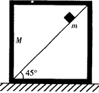 1、计算题 (8分)如图所示,质量为M的正方形空木箱放置在粗糙水平面上,空木箱对角线有一光滑细轨道,轨道与水平方向间的夹角为45°。轨道上有一质量为m的物体沿轨道自由下滑,木箱始终静止在水平面上,求物体下滑的过程中,