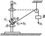 本题解析:轻环上升过程其速度v1可分解为两个分速度v∥和v⊥,如图所示,其中v∥为沿绳方向的速度,其大小等于重物B的速度v2;