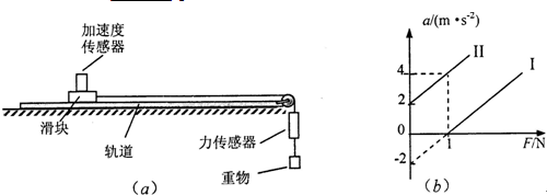 5、填空题 某实验小组设计了如图(a)所示的实验装置,探究物体的加速度与受力的关系,通过改变重物的质量,利用传感器可得到滑块运动的加速度a和所受拉力F,而后做出a-F关系图象.他们在轨道水平和倾斜的两种情况下分别做了实验,得到了两条a-F图线,如图(b)所示.由图象可知图线Ⅱ不过坐标原点的原因是______;滑块和加速度传感器的总质量m=______kg.