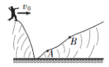 4、选择题 如图所示,某人向对面的山坡上水平抛出两个质量不等的石块,分别落到A、B两处.不计空气阻力,则落到B处的石块