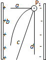 4、选择题 竖直放置的带电平行金属板间有匀强电场,一个带负电的油滴从P1点开始由静止释放,图中给出了四条可能的运动轨迹,a、c、d为直线,b为曲线,直线a水平,d竖直,油滴的运动轨迹可能是( )