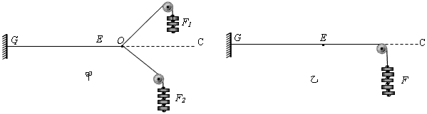 (1)用两组钩码表示力F1和F2如图甲所示互成角度地拉橡皮条GE,使其沿直线GC伸长了EO这样的长度,此时应记下_______________;