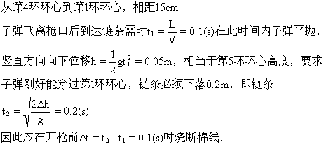 m/s,问开枪前几秒烧断棉线,子弹可以正好穿过第一环的环心?(g取10m/ )