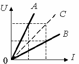 本题解析:图像斜率表示电阻,由斜率知 ,A对。当A、B中的电流相等时,由