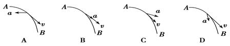 4、选择题 质点做曲线运动从A到B速率逐渐增加,如图所示,有四位同学用示意图表示A到B的轨迹及速度方向和加速度的方向,其中正确的是( )