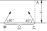 2、选择题 如图所示,河的宽度为L,河水流速为u,甲、乙两船均以静水中的速度v同时渡河。出发时两船相距2L,甲、乙船头均与岸边成60°角,且乙船恰好能直达正对岸的A点。则下列说法中正确的是?(?)