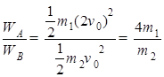 4、选择题 质量分别为m1、m2的A、B两物体放在同一水平面上,受到大小相同的水平力F的作用各自由静止开始运动。经过时间t0,撤去A物体的外力F;经过4t0,撤去B物体的外力F。两物体运动的v-t关系如图所示,则A、B两物体