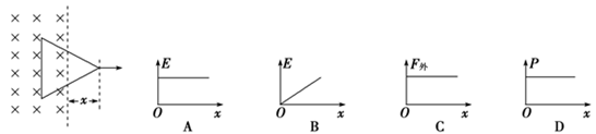 5、选择题 边长为a的闭合金属正三角形框架,完全处于垂直于框架平面的匀强磁场中,现把框架匀速拉出磁场,如图所示,则选项图中电动势、外力、外力功率与位移图象规律与这一过程相符合的是( )