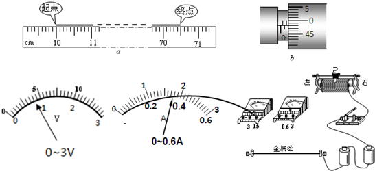 ①测长度时,金属丝的起点、终点位置如图(a)则长度为:______cm