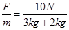 本题解析:把m1、m2看成一个整体,则合力为30N-20N=10N,方向向右;则两个物体的加速度为a=