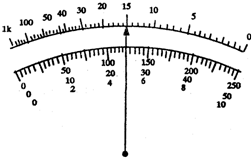 5、简答题 如图所示为多用表表面的刻度部分,如果测量时选择开关置于欧姆×100档,则所测量的电阻的阻值为______Ω,如果测量时选择开关置于直流量程2.5mA挡,则所测量的电流值为______mA,如果测量时选择开关置于直流电压量程500V挡,则所测量的电压值为______V.