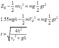 (3)若已知探险队员水平跳出,刚到达OBC面的动能Ek=1.55mgh,则他跳出时的水平速度可能为多大?