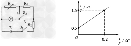 (2)甲同学已经测得电阻R1=1.8Ω,继续测电源电动势E和电阻R2的阻值。该同学的做法是:闭合S1,将S2切换到a,多次调节电阻箱,读出多组电阻箱示数R和对应的电压表示数U,由测得的数据,绘出了如图所示的