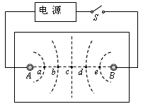 1、实验题 在“用DIS描绘电场的等势线”实验中,按图所示连接电路。在电极A、B的连线上等距离地取a、b、c、d、e等5个基准点。将电压传感器的两个接线柱分别和两个探针相连接。当正接线柱的电势高于负接线柱时,读数为正。