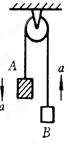 4、填空题 如图所示装置中,A物体质量为20kg,B物体质量为10kg。不计滑轮与绳子间的摩擦,两物体在空中运动时,A物体的加速度为__________m/s2。