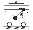 5、选择题 如图所示,cd为固定在小车上的水平横杆,物块M串在杆上,靠摩擦力保持相对杆静止,M又通过轻绳悬吊着一个小铁球m,此时小车正以大小为a的加速度向右做匀加速运动,而M、m均相对小车静止,细线与竖直方向的夹角为θ。则