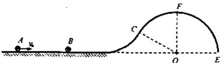 正碰,碰后B球运动到圆弧轨道的最高点F时,对轨道的压力恰好为零。试求碰撞后